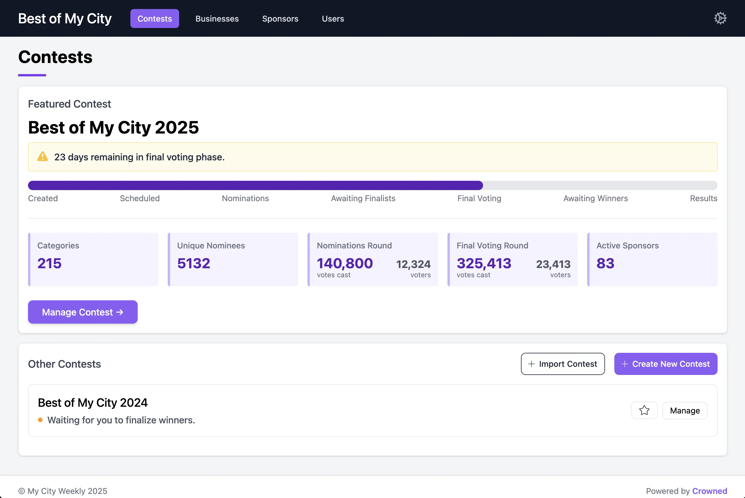 Crowned helps local publications create, manage, and monetize readers' choice contests. It's a better way to celebrate the best of your town.